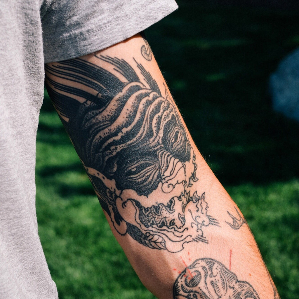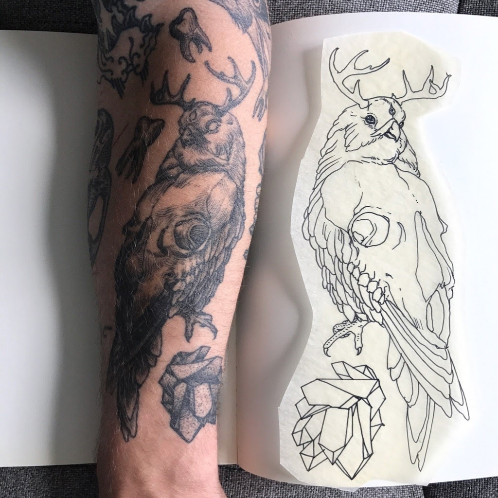 I have a fairly large tattoo collection with a general theme of death and nature by artists Victor Webster, Ray Hauer, Erik Jacobsen, Damien Thorn, Hon Gak and Sue Jieven. One of my pieces by Ray even made it to the top page of Reddit.