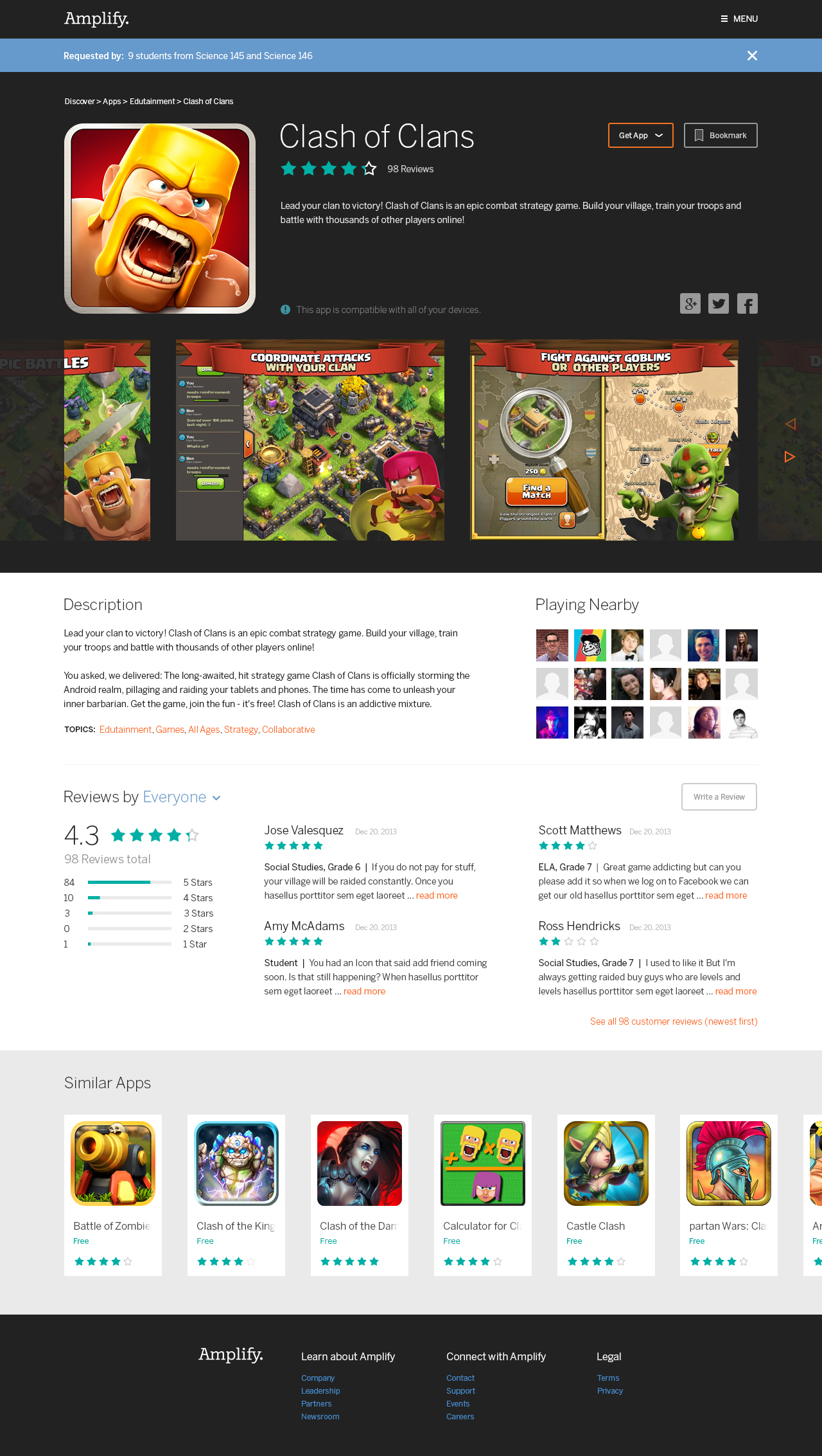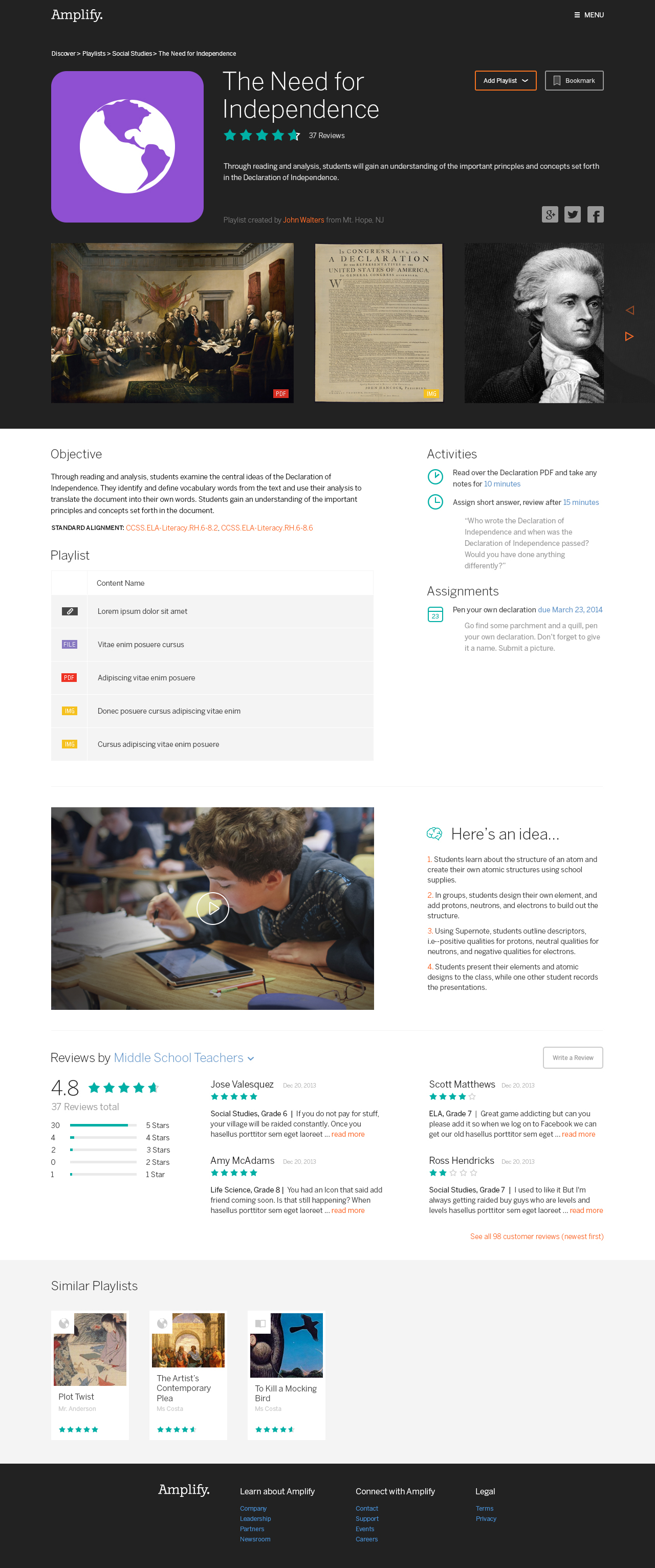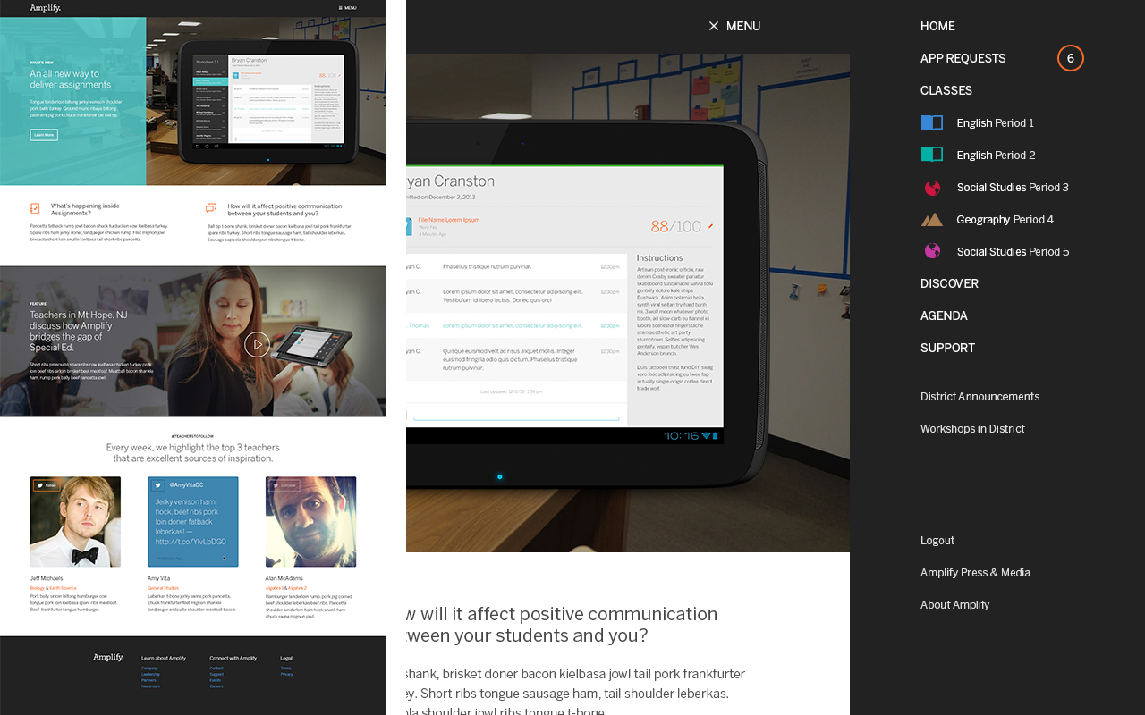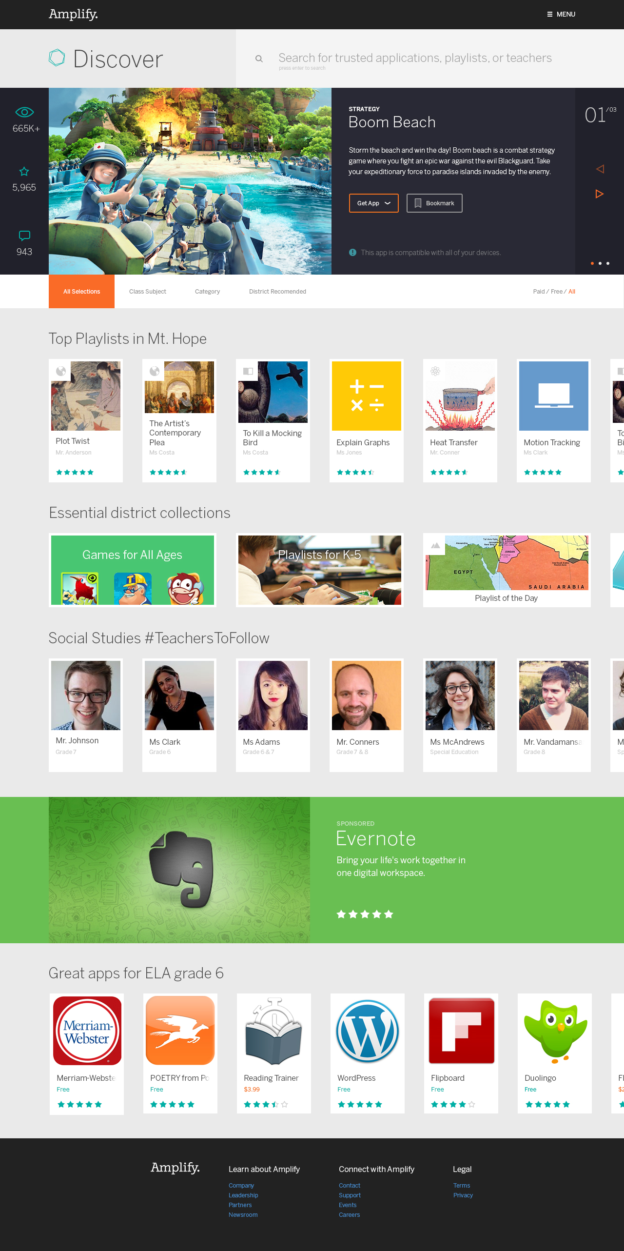 Amplify was bringing a 1:1 tablet solution to schools with the hope to better connect teachers to students to technology. Teachers had lessons that they wanted to share with each other and approved applications to distribute to their students. How could we create a shared resource for teacher's content and celebrate the work they do every day?