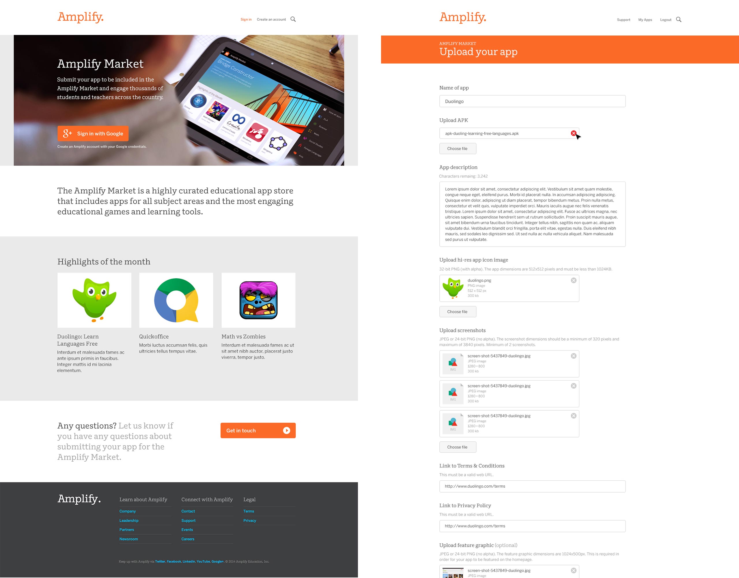 I created the core product experience for how Amplify could share content and enable relevant applications to upload their products to Amplify's Market.
