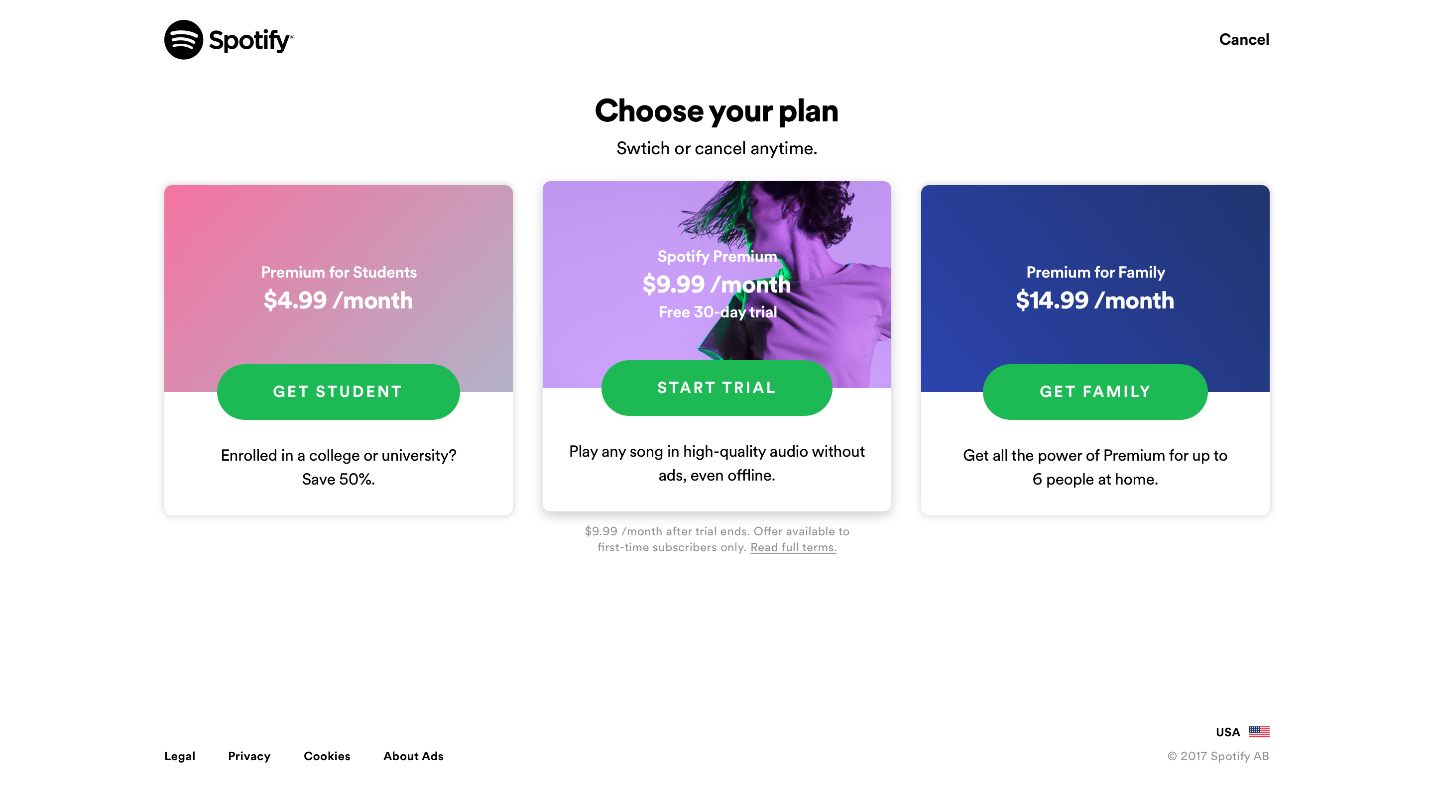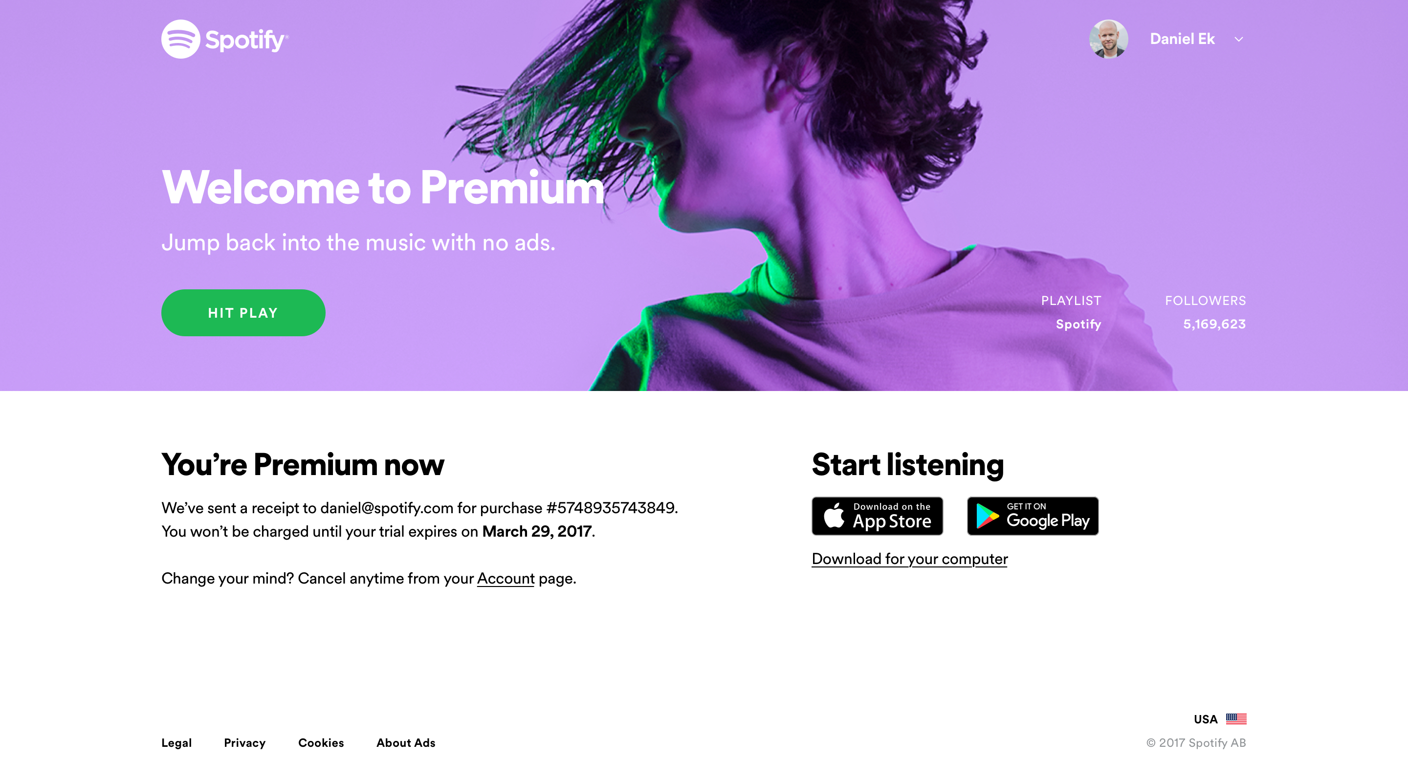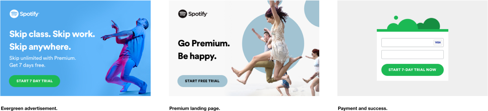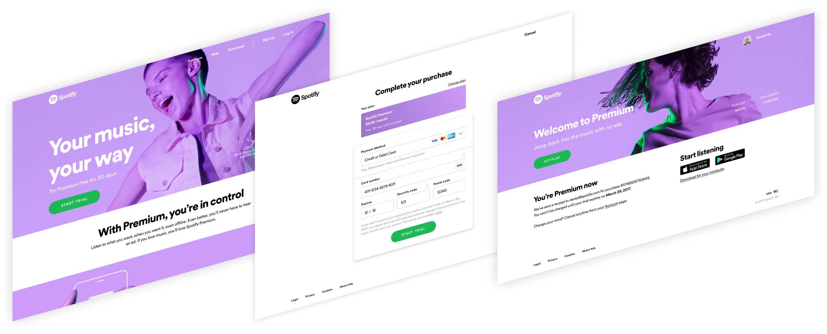For example, in order to pay for Spotify, users had to go through the website. This made the premium web flow a perfect candidate to provide focus for this vision. Tied to our revenue.