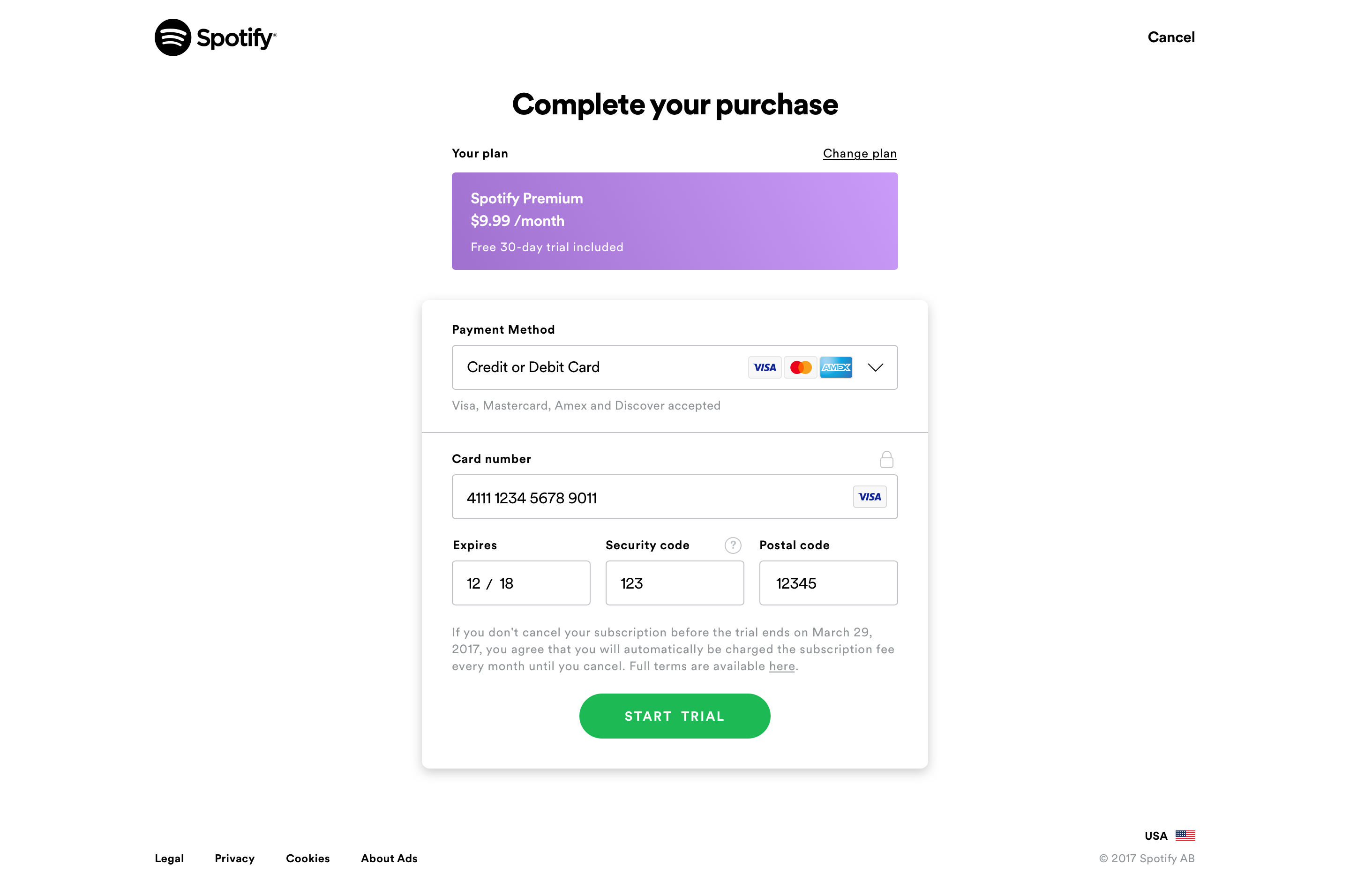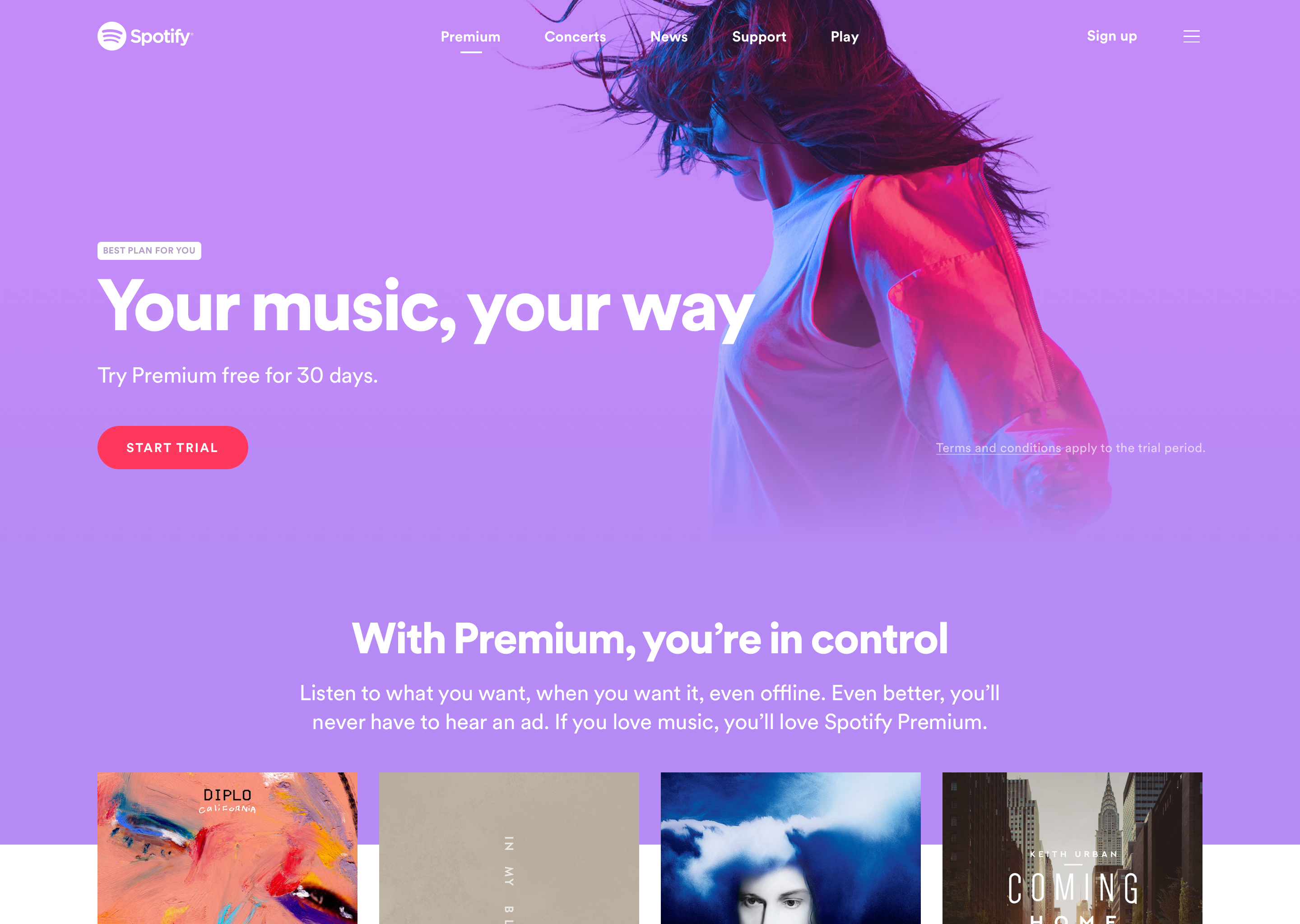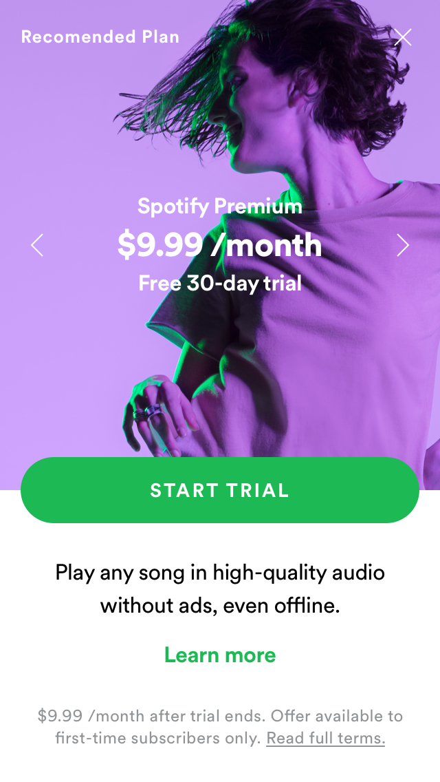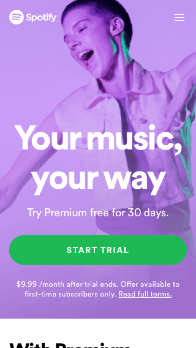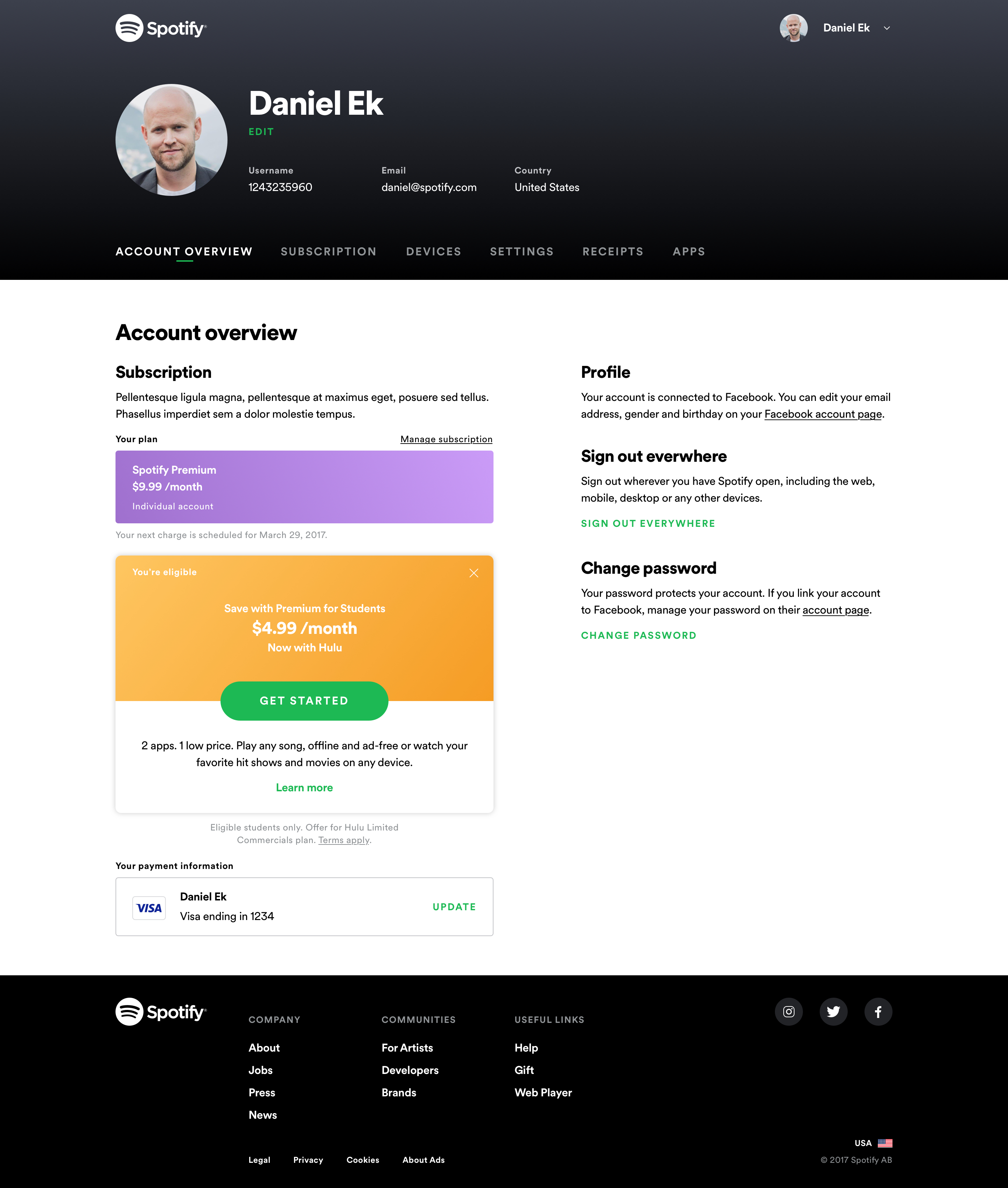 For example, in order to pay for Spotify, users had to go through the website. This made the premium web flow a perfect candidate to provide focus for this vision. Tied to our revenue.