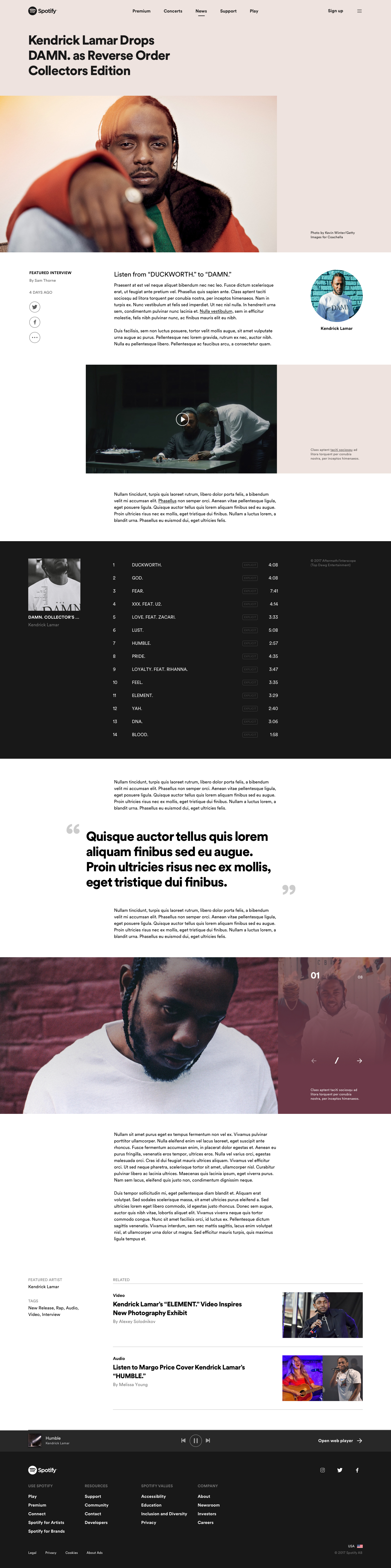 I focused on how we can celebrate the content that Spotify provides, taking inspiration from editorial formats within the music industry and our product experience.