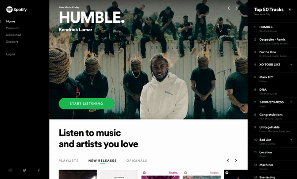 The Growth team leveraged the consolidated visual foundation to run a baseline test. There was an increase in Premium upgrades, more people scrolled past the "fold", and there was a significant increase in plays in the Web Player.